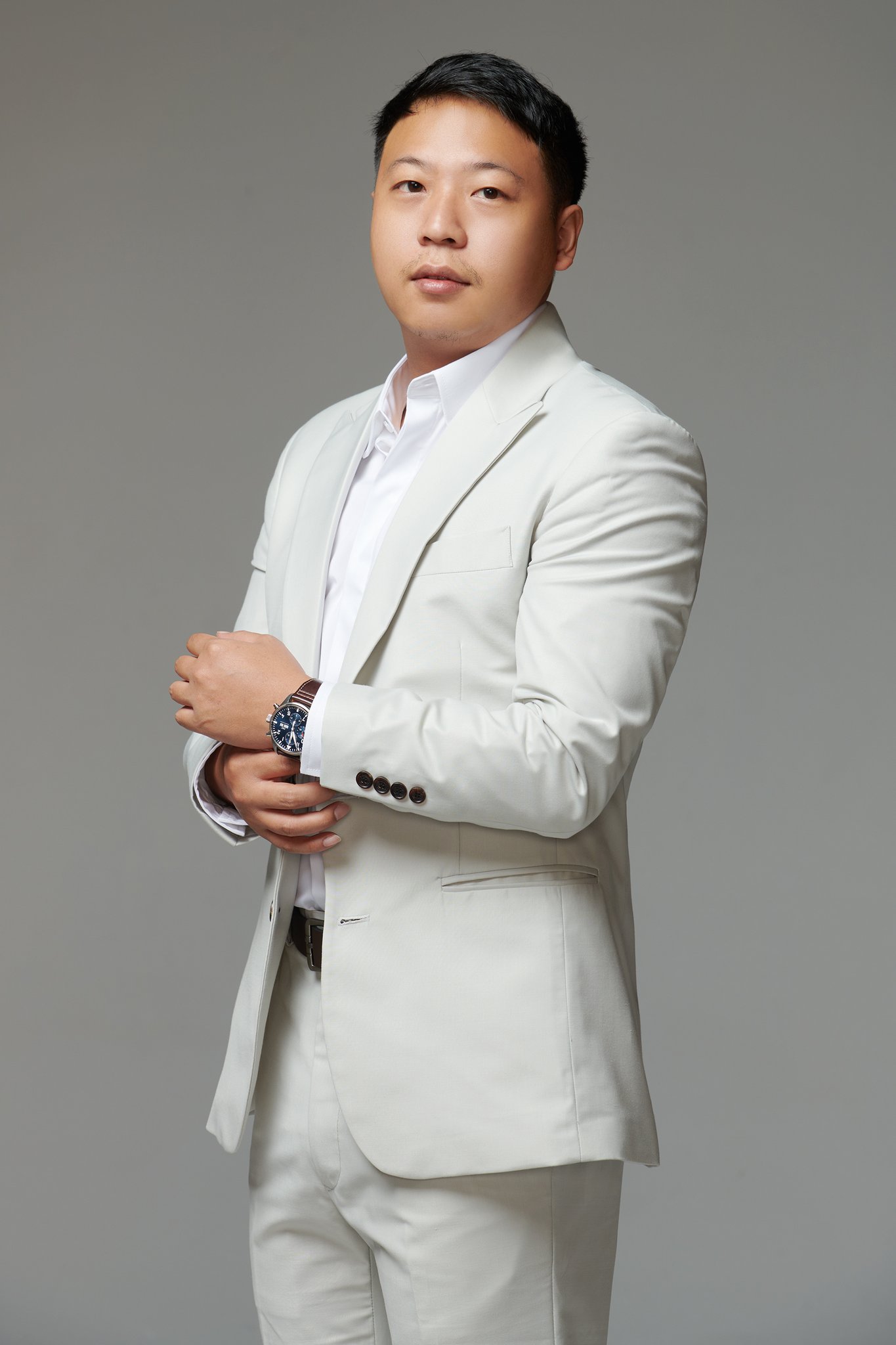 加深 V-Zone: 透過調整西裝扣位,拉長領口的 V 字線條,視覺上能延伸頸部並修飾臉型。